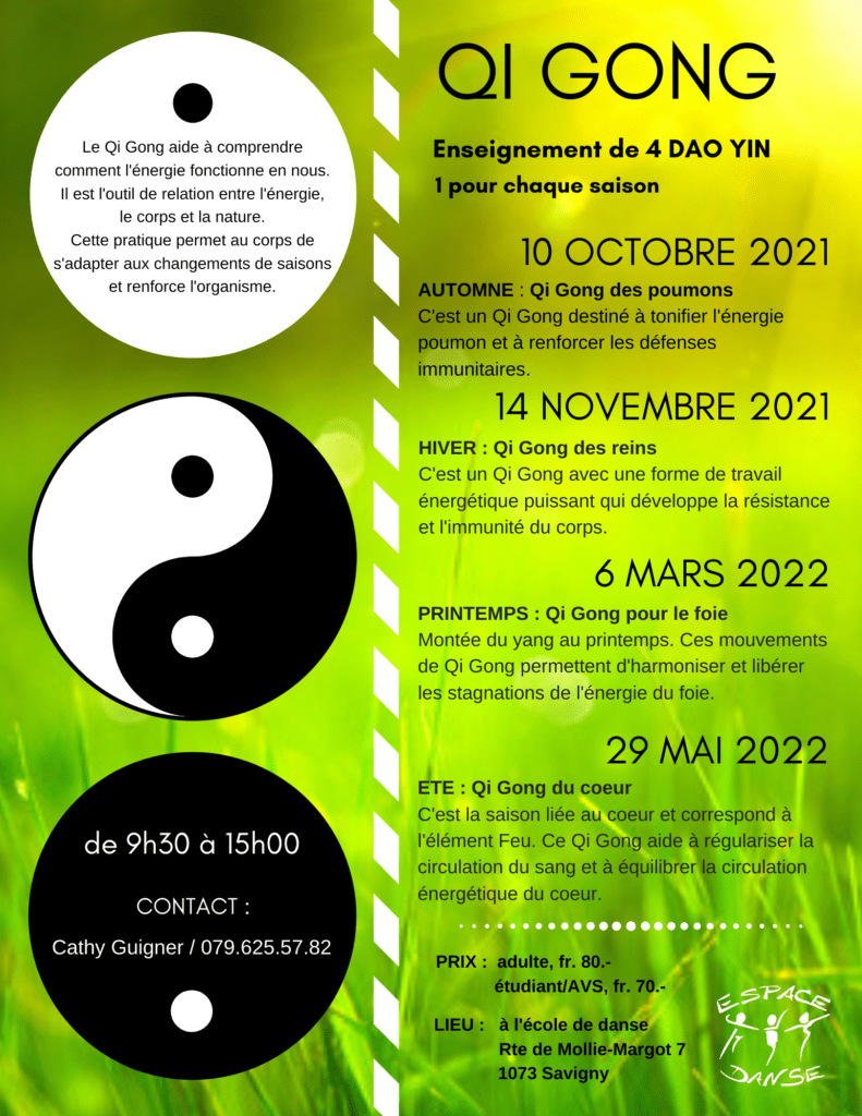 Le Qi Gong est une gymnastique traditionnelle chinoise et une science de la respiration fondée sur la connaissance et la maîtrise du souffle et qui associe mouvements lents, exercices respiratoires et concentration. Le terme signifie littéralement « réalisation ou accomplissement (gong) relatif au qi », ou « maîtrise du souffle ».